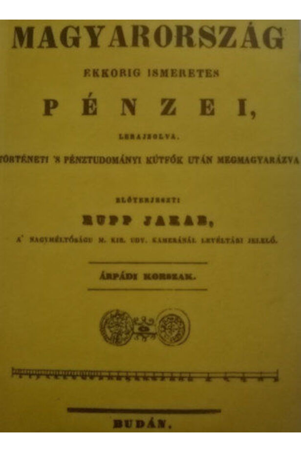 Rupp Jakab: Magyarország ekkorig ismeretes pénzei, lerajzolva, történeti s pénztudományi kútfők után megmagyarázva. I. kötet: Árpádi korszak;